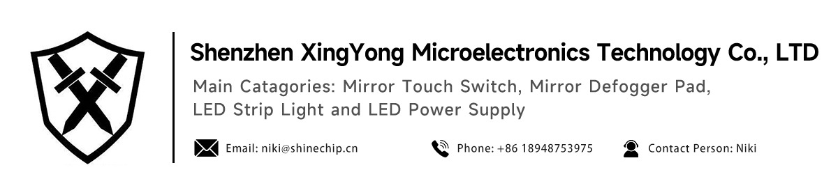Shinechip-Espejo de baño inteligente con control táctil, doble botón, pantalla de temperatura y tiempo, controlador de espejo ultrafino de 12V